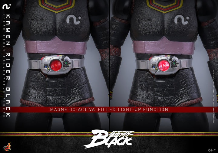 Hot Toys proudly presents the 1/6th scale Kamen Rider Black Collectible Figure, a tribute to one of the most well-loved Riders in the franchise. The figure features a newly crafted helmet with LED-lit red eyes and twelve interchangeable hands for a wide range of dramatic poses. Kamen Rider Black’s signature black suit is faithfully recreated with textured patterns and a set of black armor, complemented by a Vital Charger Henshin belt that has a spinning LED red light, allowing fans to relive his powerful Henshin sequence. Accessories include a Rider Punch and a Rider Kick effect to ramp up the action, making this a must-have for Kamen Rider fans.