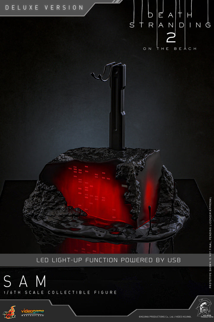 Hot Toys proudly introduces the 1/6th scale Sam Collectible Figure (Deluxe Version) — an upgraded version overflowing with additional accessories and enhanced display options. Just like the Regular version, this figure features a head sculpt with rolling eyeballs and meticulously crafted dark brown hair, a Drawbridge suit with UV luminous reflective effect, full-body utility harness, detachable Battle Skeleton, back armor with Odradek scanner, and transporter boots — all weathered for worn realism.